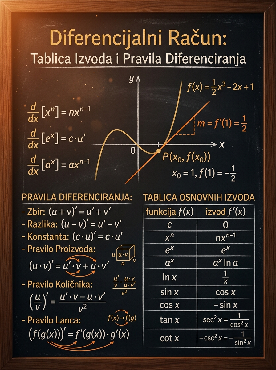 Pravila diferenciranja: kako iz osnovnih izvoda prelaziš na realne zadatke